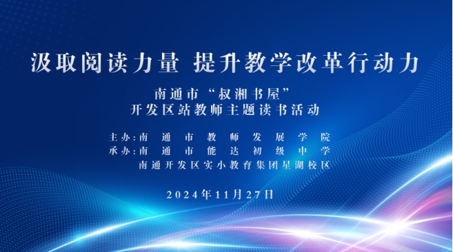 欲求教书好,先做读书人。为了汲取阅读力量,弘扬教育家精神,引导教师将读书所学迅速高效转化为实践能力。11月27日,南通市“叔湘书屋”开发区站整本书阅读与跨学科主题学习研讨活动在南通开发区实验小学教育集团星湖校区和南通市能达初级中学举行。