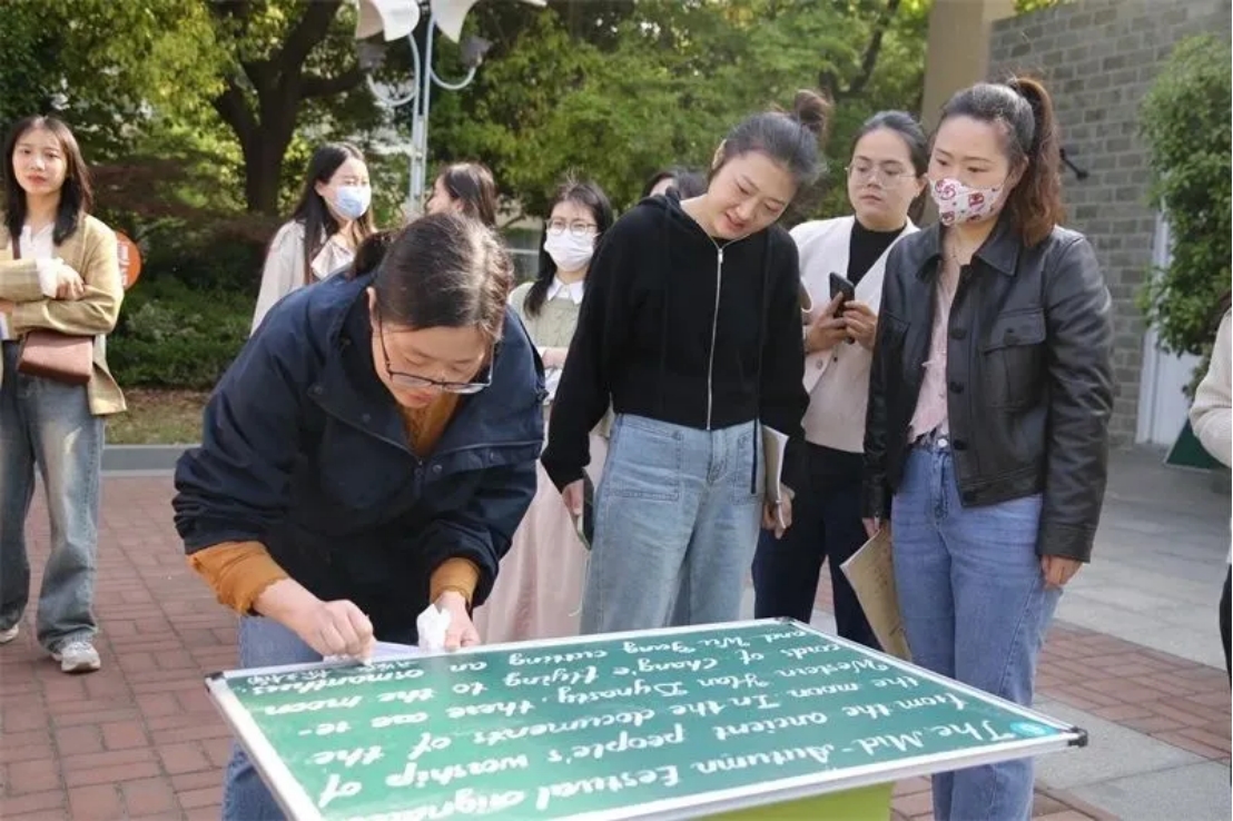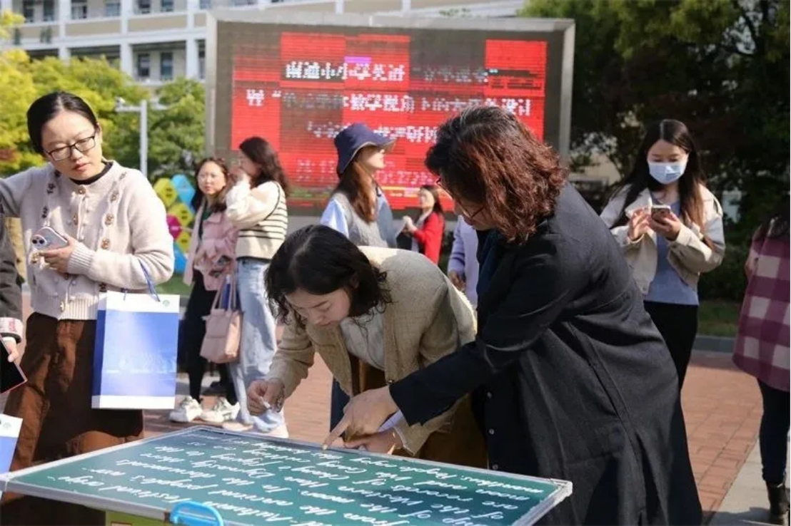 来自南通各地的小学英语教师集聚实小新河校园,用各具特色的签名在报到墙上拼出“vigour”的字样,以生机与活力启动本次活动。